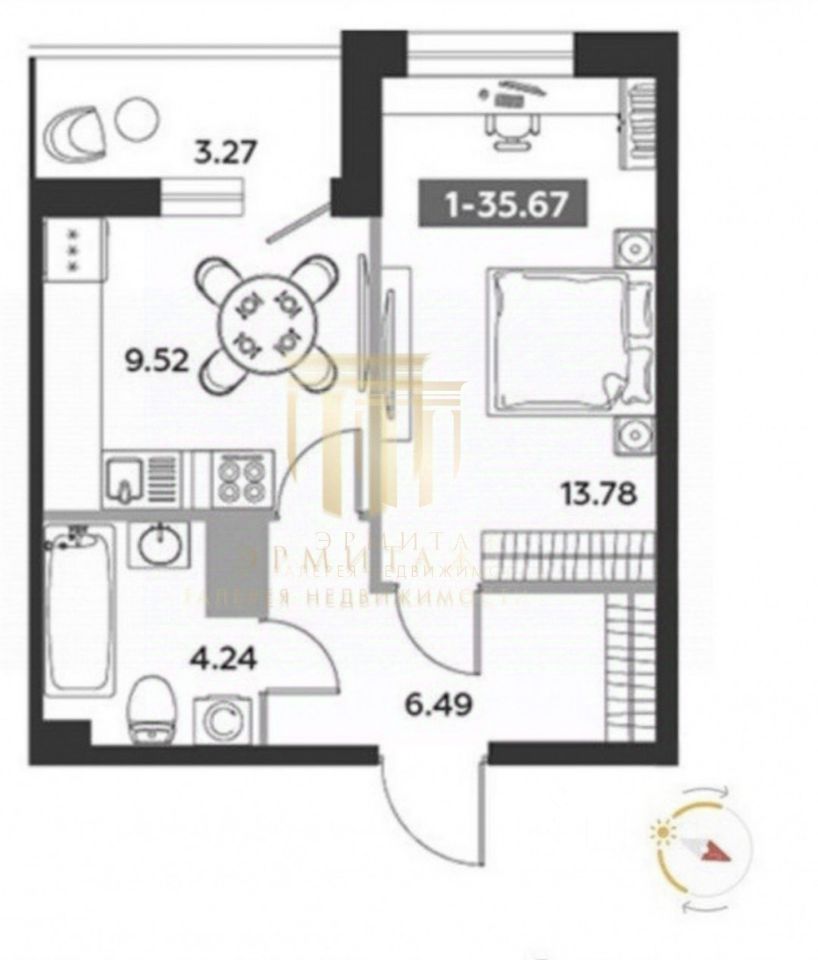 Арт. 122829839 Продам 1 комнатную квартиру по переуступке в ЖК "Аквилон ZALIVE".