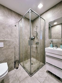 Абсолютно развитая инфраструктура микрорайона - рядом продуктовые магазины, кафе, студии красоты, торговые центры, детские сады и школы и т.д.
