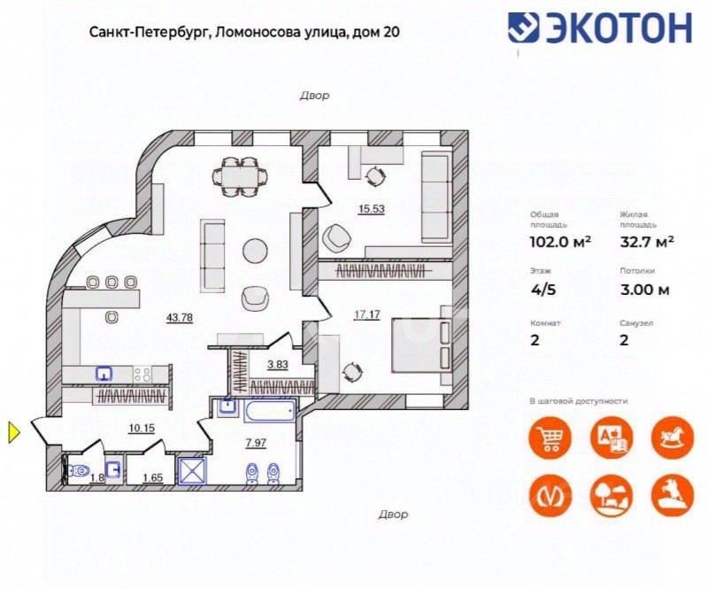 Прекрасное расположение - в самом центре Петербурга! Пешая доступность до главных достопримечательностей города, также скверы и набережные для прогулок, магазины, кафе и сервисы для комфортной жизни.