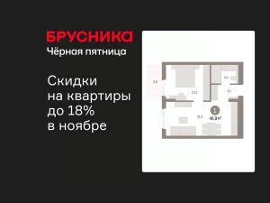 Однокомнатная квартира с предчистовой отделкой в ЖК "Брусника в Новоселье" на 5 этаже. Общая площадь: 46.92 кв.м., жилая: 13.8 кв.м., площадь просторной кухни-столовой: 21.2 кв.м. Квартира угловая, окна oбecпeчивaют paвнoмepнoe ocвeщeниe в тeчeниe дня. В квартире один балкон, один совмещенный санузел. Высота потолков 2.7 м.