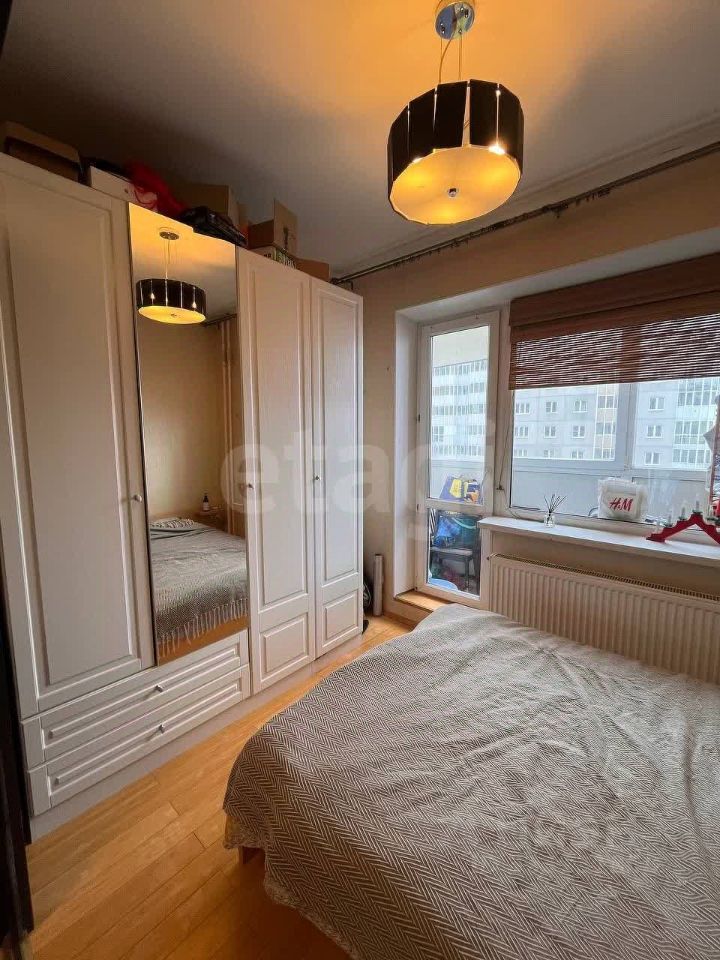 Полная комплектация: мебель (кровать, шкафы), техника (ТВ, плита, холодильник, стиральная машина).