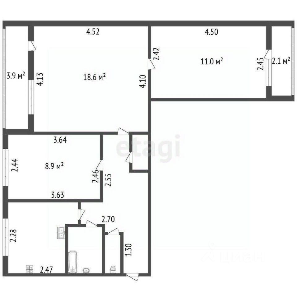 Простор и свет: 56,5 кв.м. и две лоджии (3,9 и 2,1 кв.м.). Окна на восток и запад — квартира наполнена светом целый день.