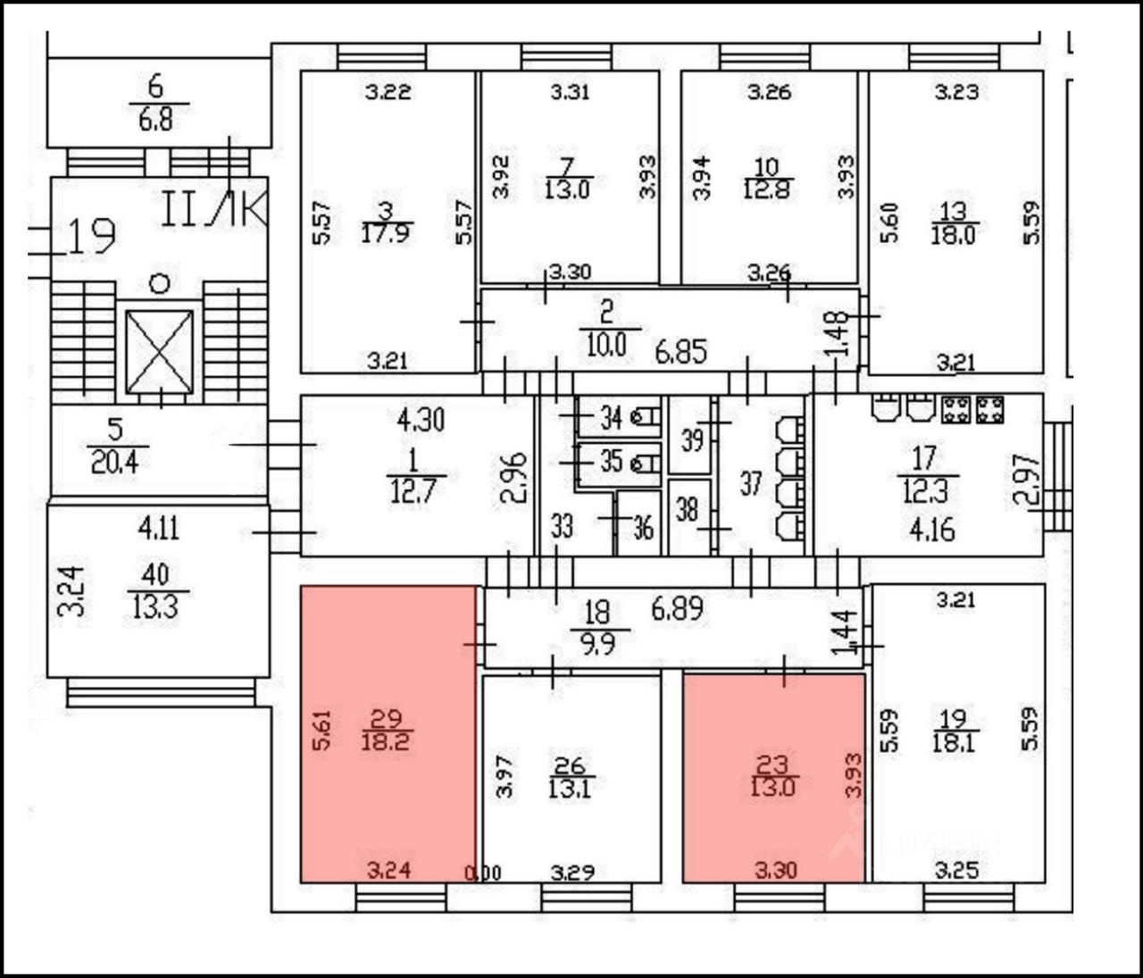 Комнаты 18.2 и 13 м2. Квартира состоит из 8-ми комнат.