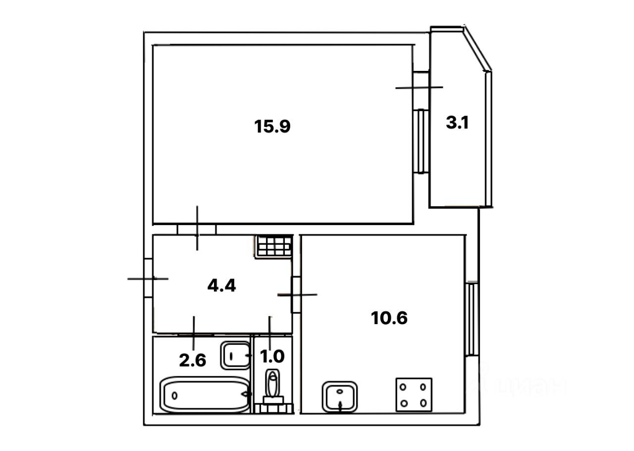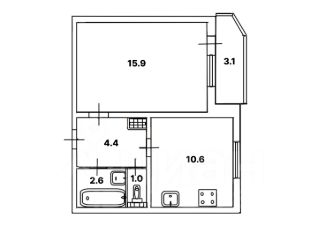 Кухня - столовая 10.6 кв.м. с остекленным балконом 3.1 кв.м., который станет дополнительным пространством для хобби, отдыха или хранения вещей. Жилая комната 15.9 кв.м. с возможностью разделения на гостевую и спальную зоны. Прихожая 4.4 кв.м. с местом под шкаф. Санузел раздельный. Вид во двор. В квартире выполнен косметический ремонт.