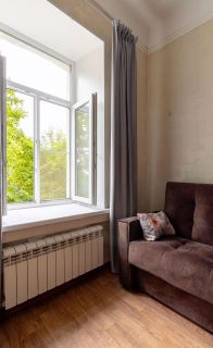 - Окно комнаты выходит в тихий зелёный двор - пение птиц вместо шума машин;