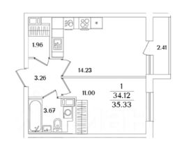 •	Эргономичная площадь 35,3 м²: Ничего лишнего! Эффективная планировка, в которой продумана каждая деталь.