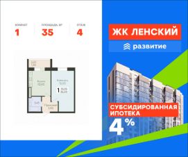 В продаже квартира площадью 35.00 кв. м с отделкой white box на 4 этаже 16 этажного дома. Квартира находится в 4834 корпусе.