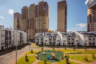 Закрытая территория; 66 таунхаусов с отдельными входами;