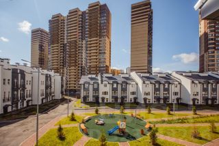 Закрытая территория; 66 таунхаусов с отдельными входами;