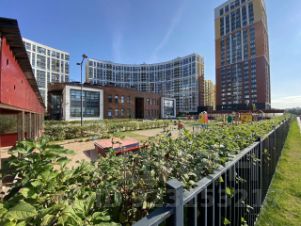 На территории свой детский сад, спортивные и детские площадки. Есть даже стадион с футбольной и баскетбольными полями.