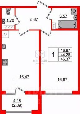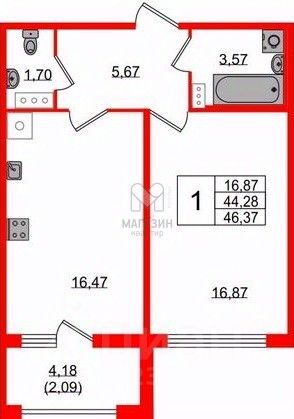 - Раздельный санузел -1.7 м2 туалет и 3,6 м2 ванная