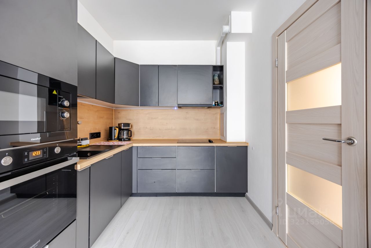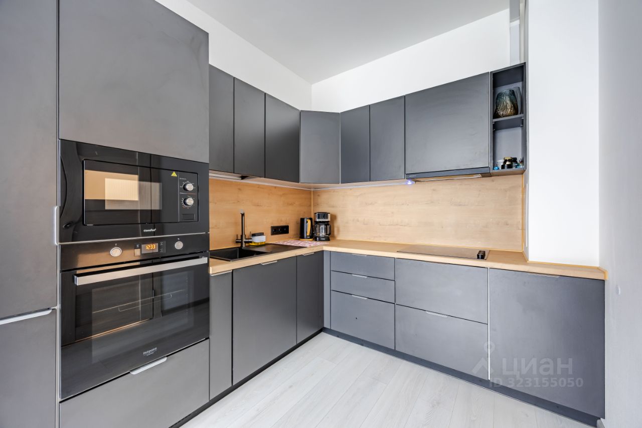 • Большой кухонный гарнитур со встроенным холодильником, варочной панелью, микроволновой печью и духовым шкафом