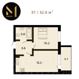 • Общая площадь — 37 м²