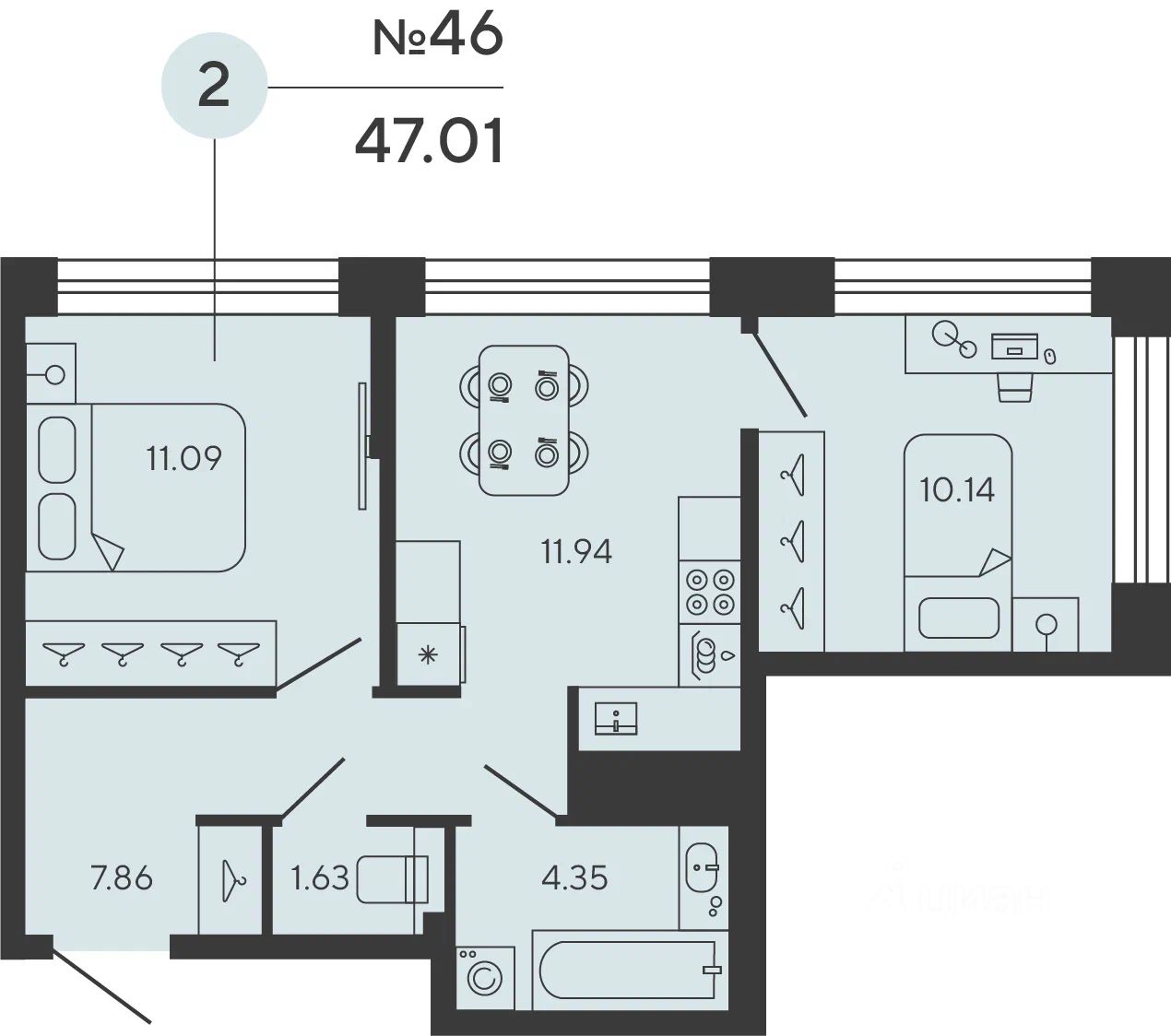 Квартира 46 в корпусе Carbon проекта бизнес-класса "BASHNI ELEMENT"