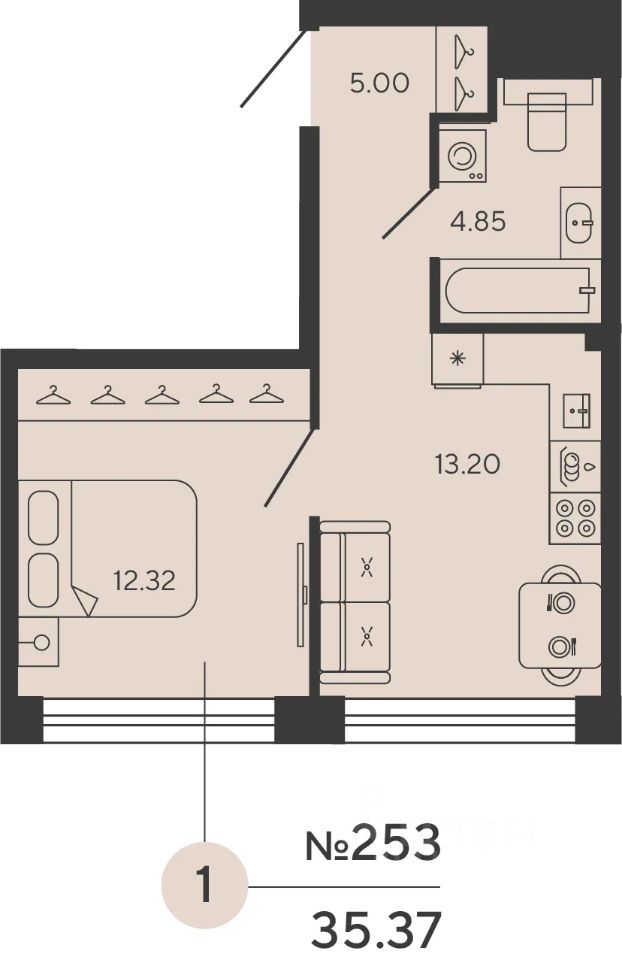 Квартира 253 в корпусе Carbon проекта бизнес-класса "BASHNI ELEMENT"