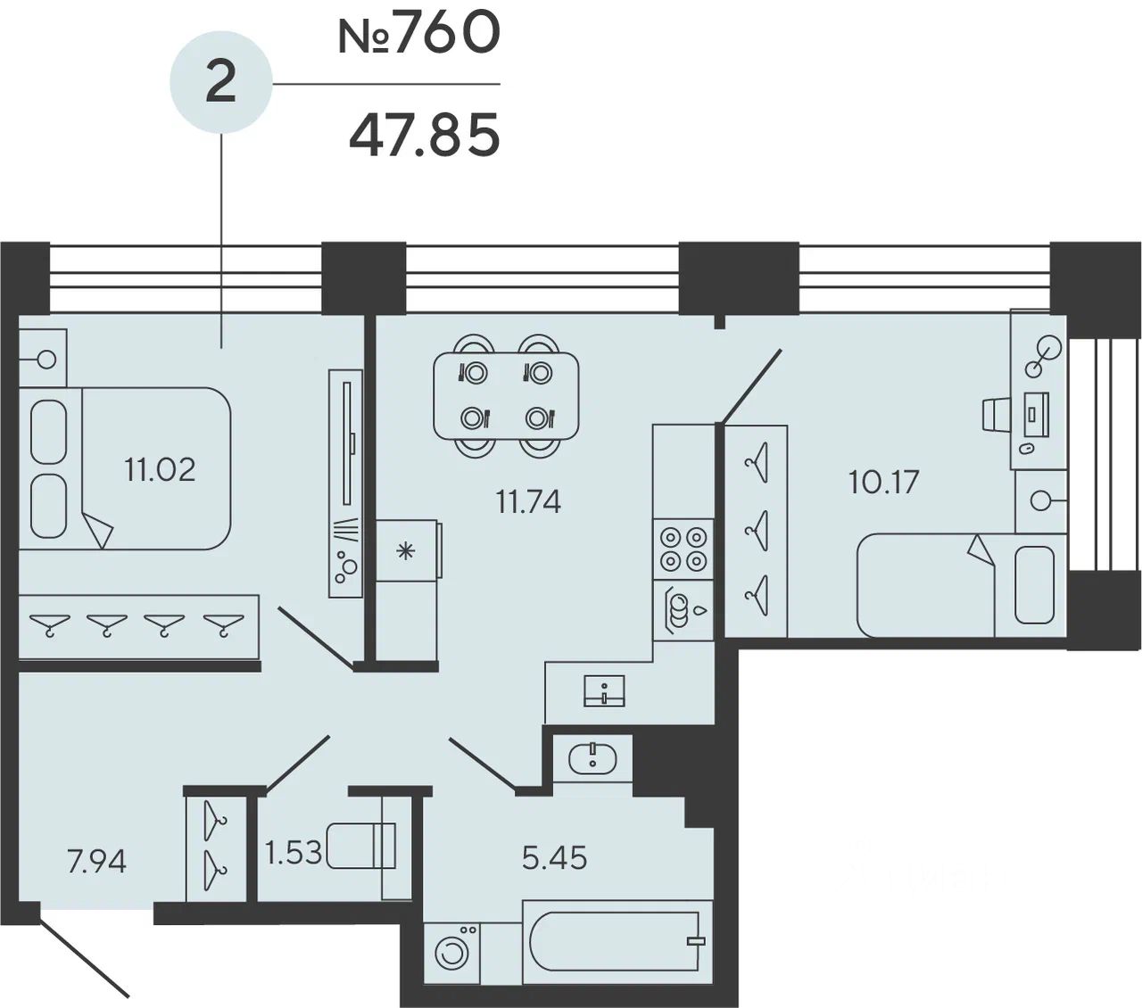 Квартира 760 в корпусе Platina проекта бизнес-класса "BASHNI ELEMENT"