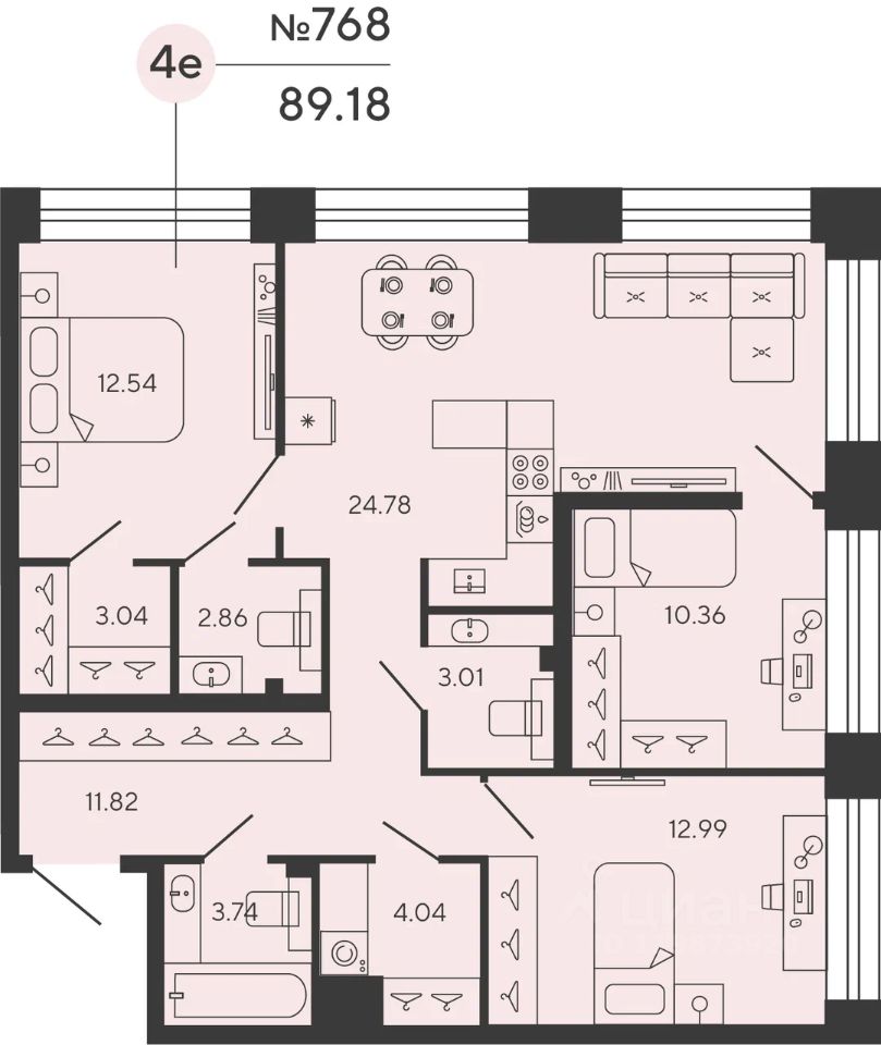 Квартира 768 в корпусе Platina проекта бизнес-класса "BASHNI ELEMENT"
