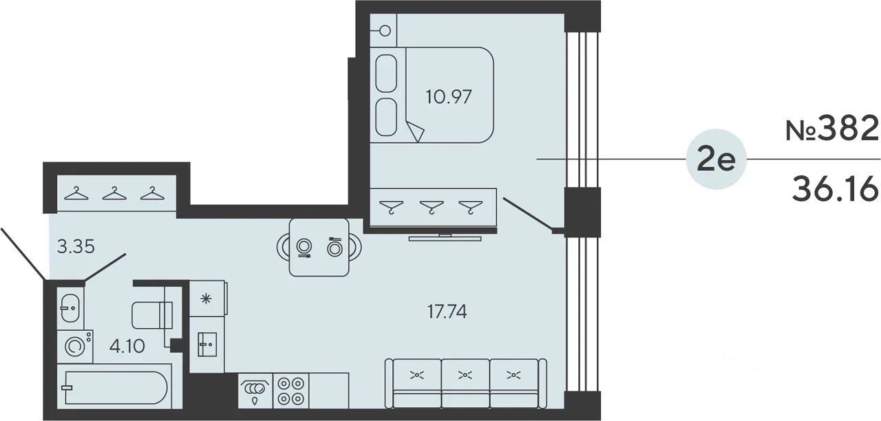 Квартира 382 в корпусе Cuprum проекта бизнес-класса "BASHNI ELEMENT"