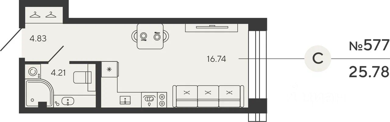 Квартира 577 в корпусе Titan проекта бизнес-класса "BASHNI ELEMENT"