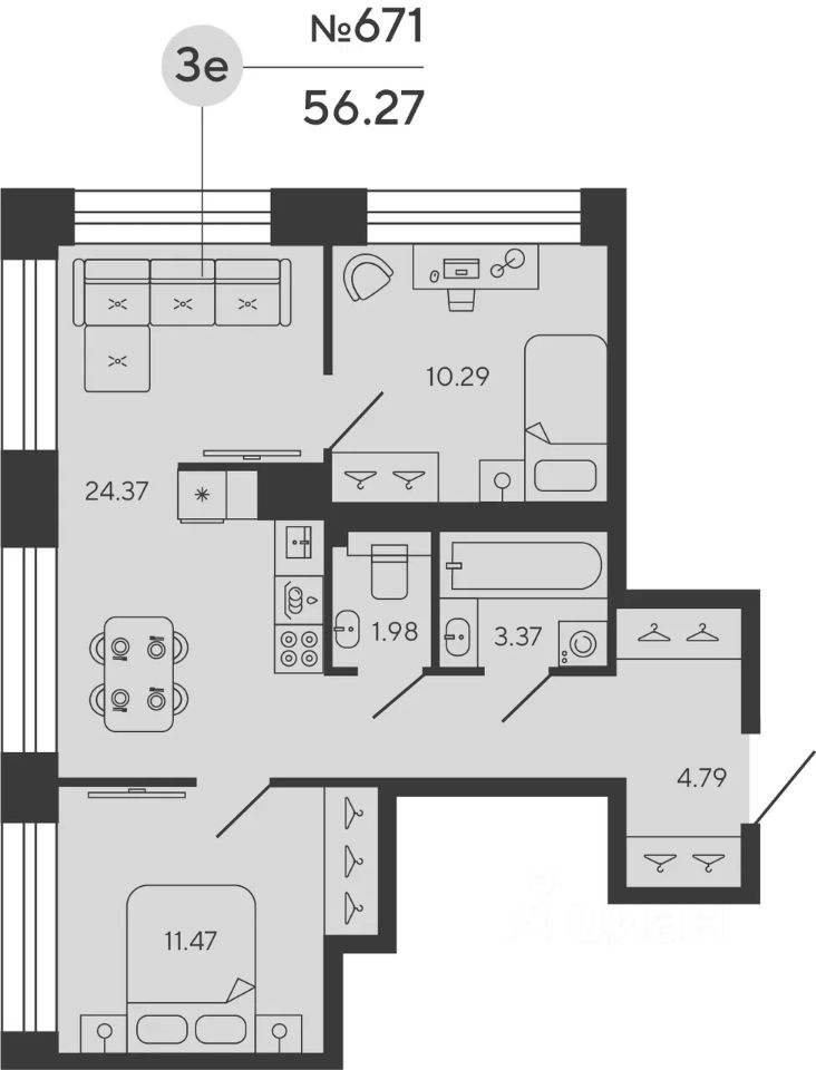 Квартира 671 в корпусе Titan проекта бизнес-класса "BASHNI ELEMENT"