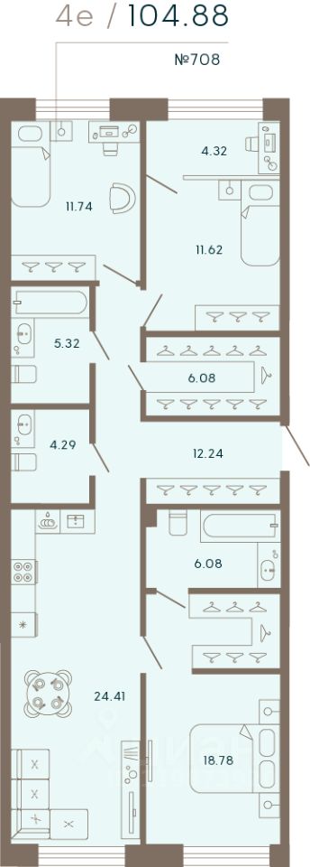 Апартамент 708 в Комплексе "17/33 Петровский остров"