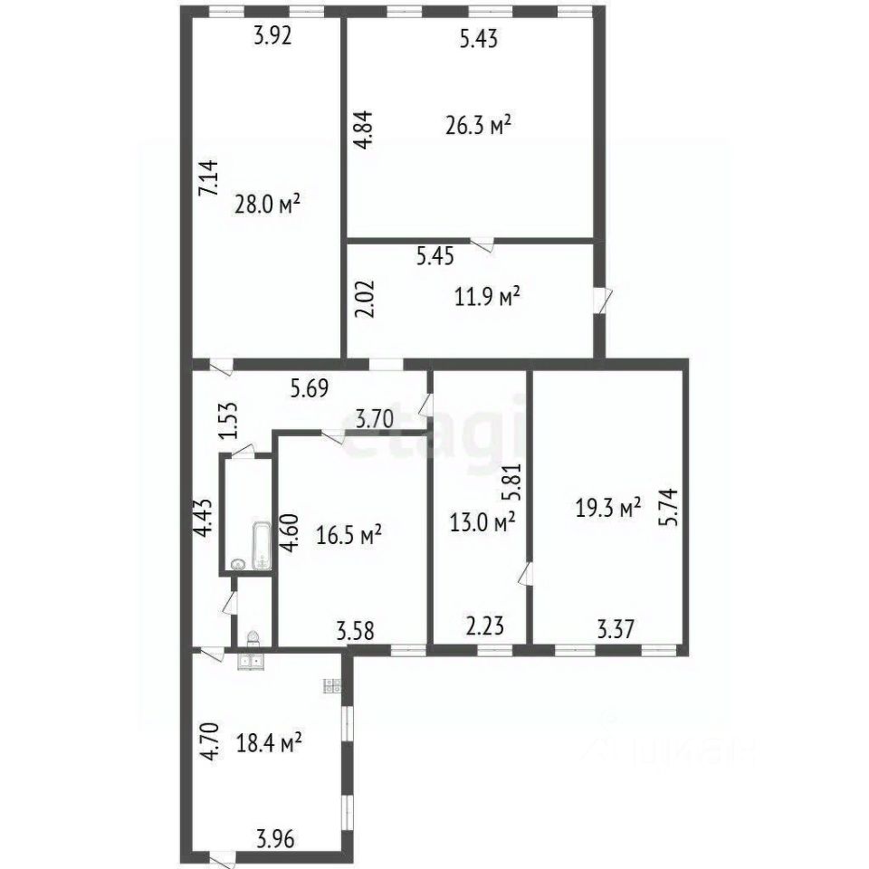 Просторная и светлая комната правильной формы, площадью 28 м².