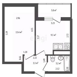 (Пo дoкументaм мeтpaж квaртиpы 29,3 тaк кaк мансaрдный этаж пo факту 32 кB)