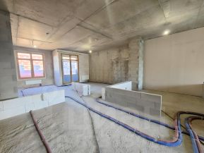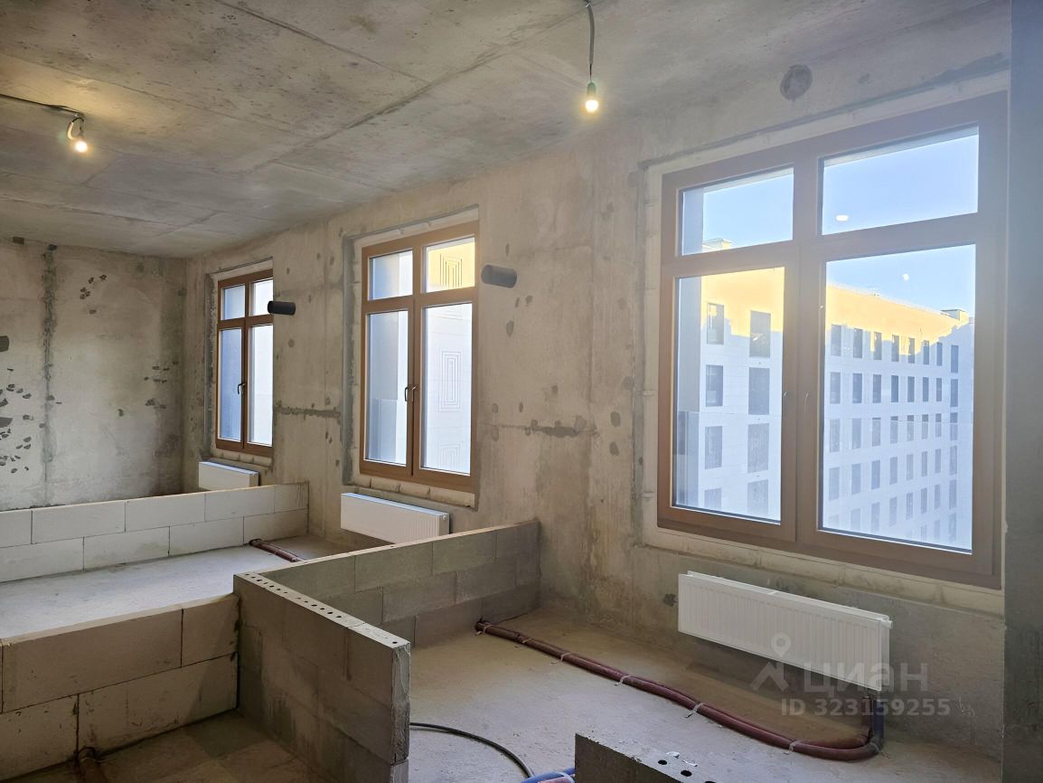 В квартире выполнена подготовка под отделку: сделана ровная стяжка пола, разведена электрика с розетками и выключателями, гидроизоляция в санузлах, установлены качественные двухкамерные стеклопакеты на окнах и прочная входная дверь. Высота потолков составляет 3,1 метра.