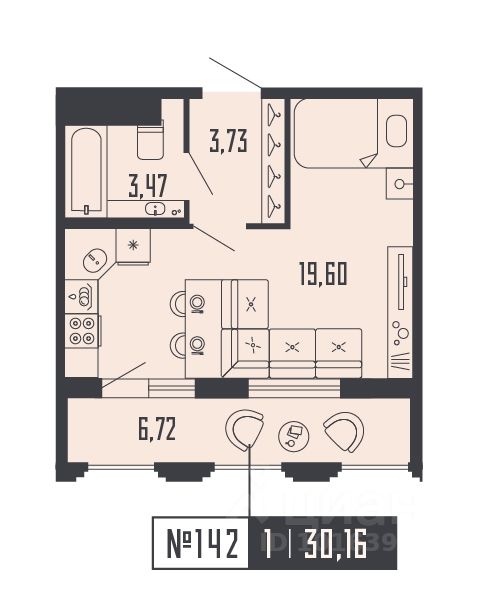 Студия 137 на 12 этаже в секции 2 Дома SHEPILEVSKIY (Шепилевский)