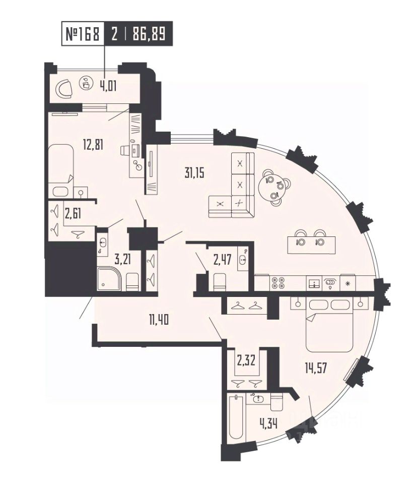 2-ком. квартира 172 на 20 этаже в секции 2 Дома SHEPILEVSKIY (Шепилевский)