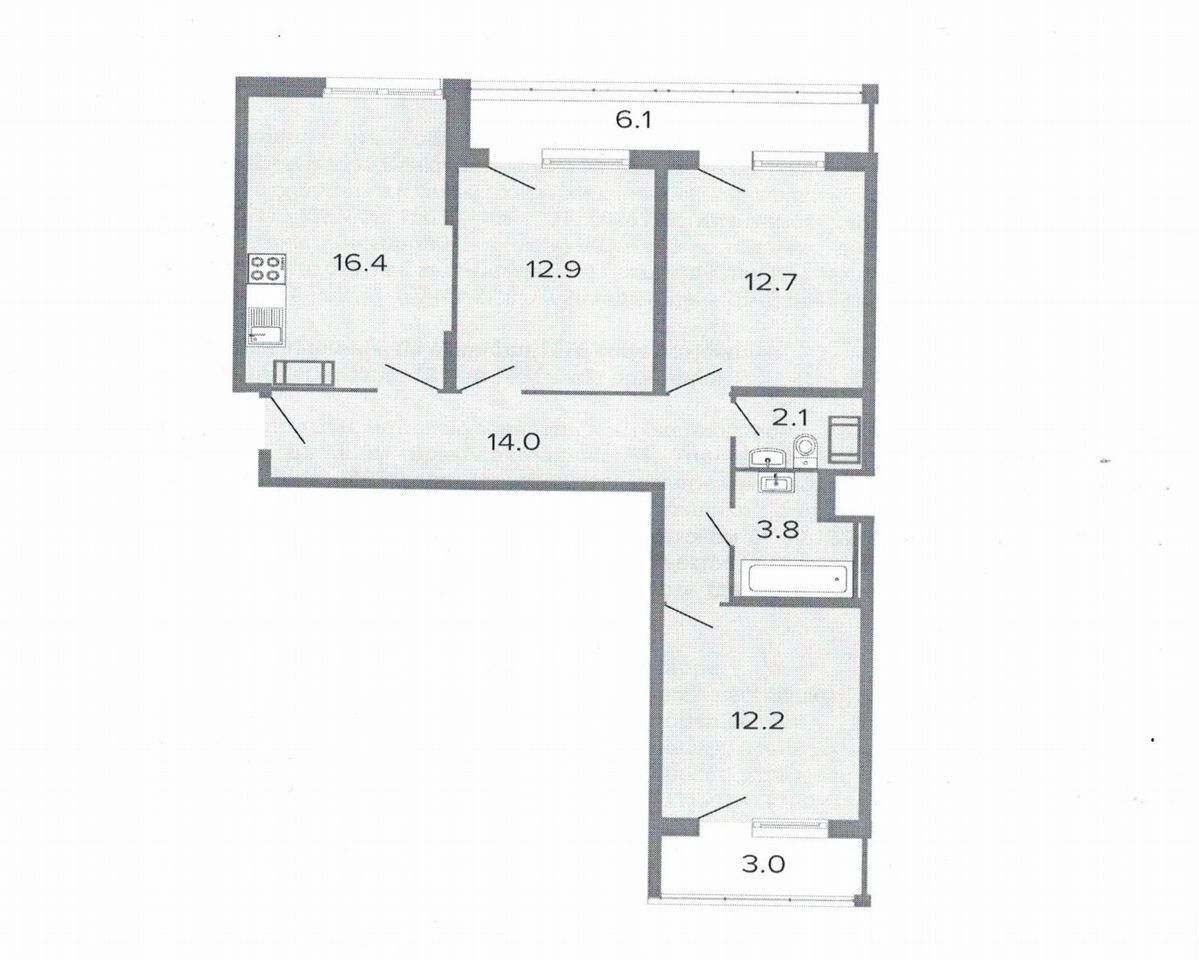 Площадь общей жилой площади составляет 74 м², площадь кухни 12 м², наличие 2 больших остекленных лоджий добавляет дополнительное пространство и возможность насладиться видами.