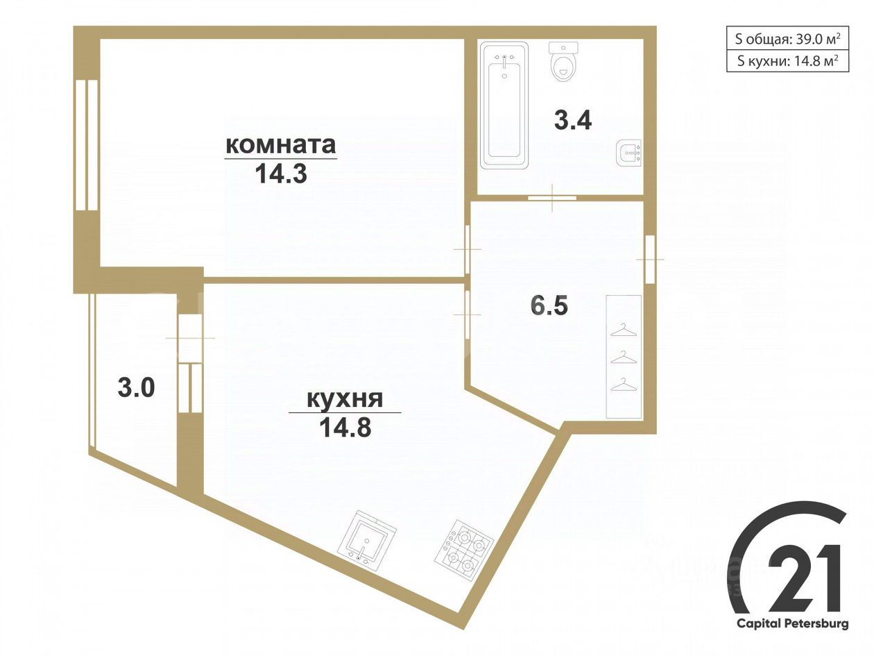 Квартира расположена на комфортном 6 этаже, окна выходят во двор. Общая площадь квартиры 39 кв.м. Просторная кухня - 14,8 кв.м, комната - 14,3 кв.м, прихожая - 6,5 кв.м, застекленная лоджия - 3 кв.м. Выход на лоджию из кухни. В квартире сделан дизайнерский ремонт из высококачественных материалов.