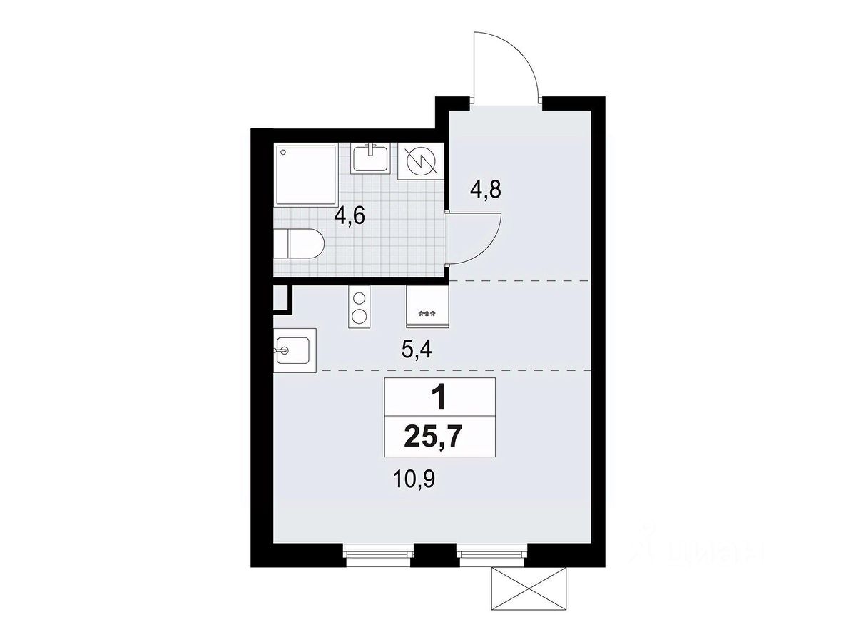 Студия площадью 25.68 в ЖК "А101 Лаголово" на 2 этаже. Квартира с отделкой. Вид из окна во двор. В квартире 1 санузел. Высота потолков 2.74 м. Ключи в 2025 году.
