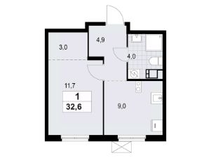 1-комнатная квартира площадью 32.65 в ЖК "А101 Лаголово" на 8 этаже. Квартира с отделкой. Вид из окна на улицу. В квартире 1 санузел. Высота потолков 2.74 м. Ключи в 2025 году.