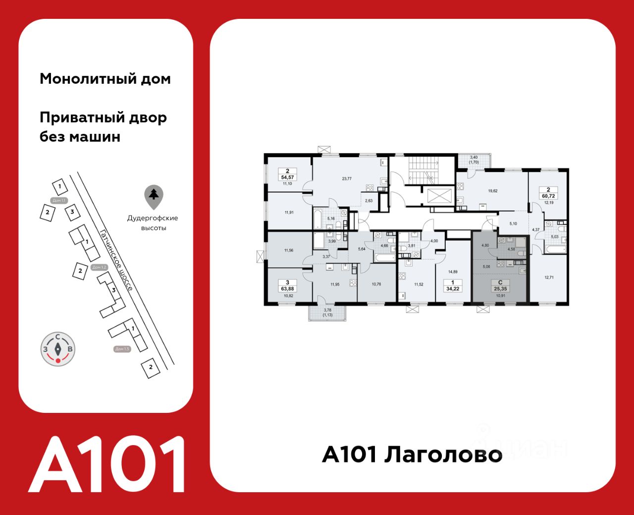 "А101 Лаголово" - современный город у подножия знаменитых Дудерговских высот, в объятиях чистейших озер и зеленых живописных массивов, наполненный всем необходимым для счастливой жизни.