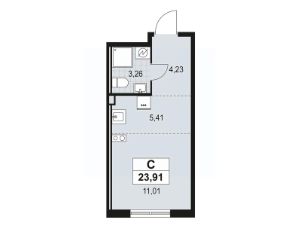 Студия площадью 23.91 в ЖК "А101 Лаголово" на 2 этаже. Квартира без отделки. Вид из окна на улицу. В квартире 1 санузел. Высота потолков 2.74 м. Ключи в 2025 году.