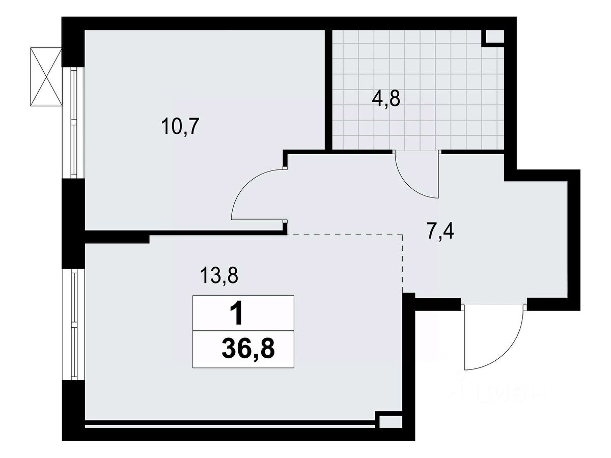 Квартира передается без отделки. Благодаря тому, что в данном типе отделки стены не возводятся, вы сможете создать удобную планировку и самостоятельно организовать зонирование комнат.