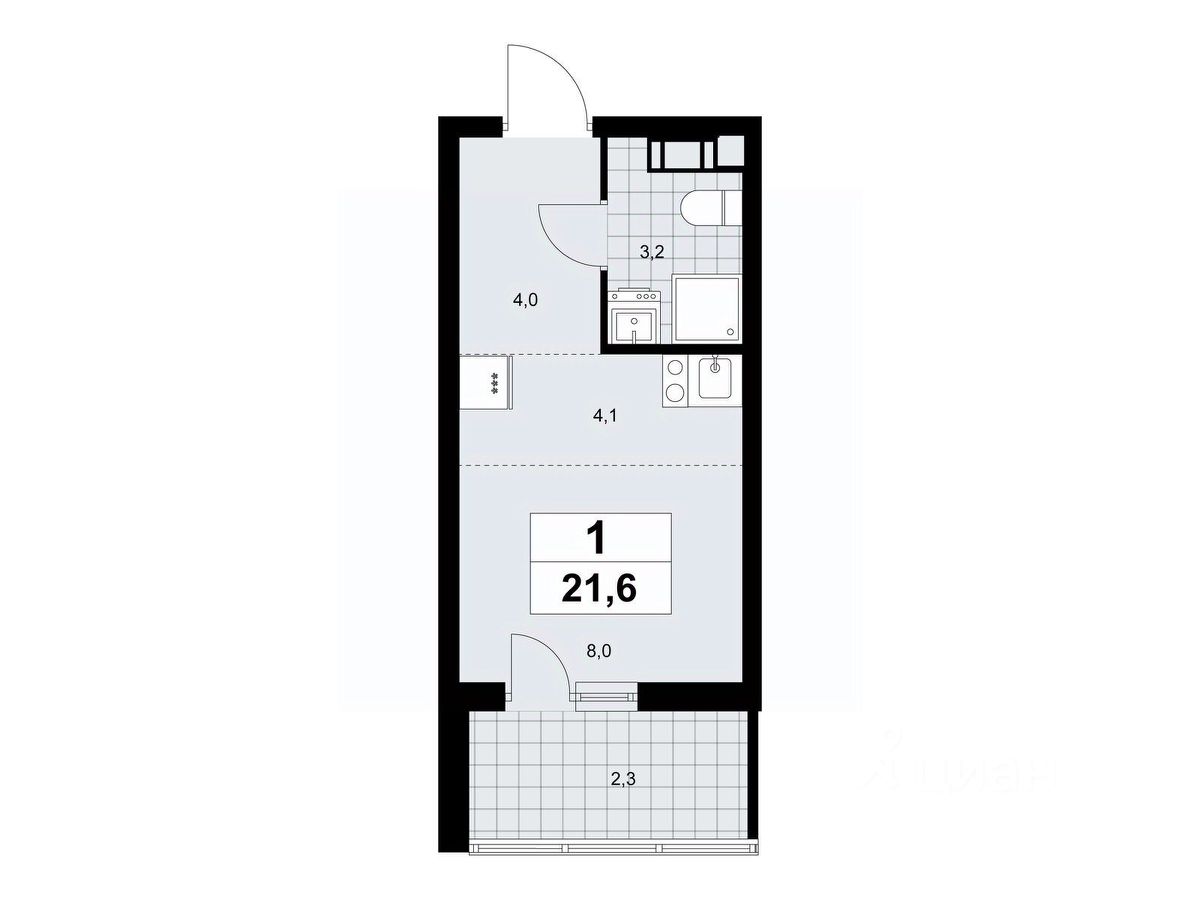 Студия площадью 21.60 в ЖК "А101 Лаголово" c лоджией на 8 этаже. Квартира с отделкой. Вид из окна во двор. В квартире 1 санузел. Высота потолков 2.95 м. Ключи в 2025 году.