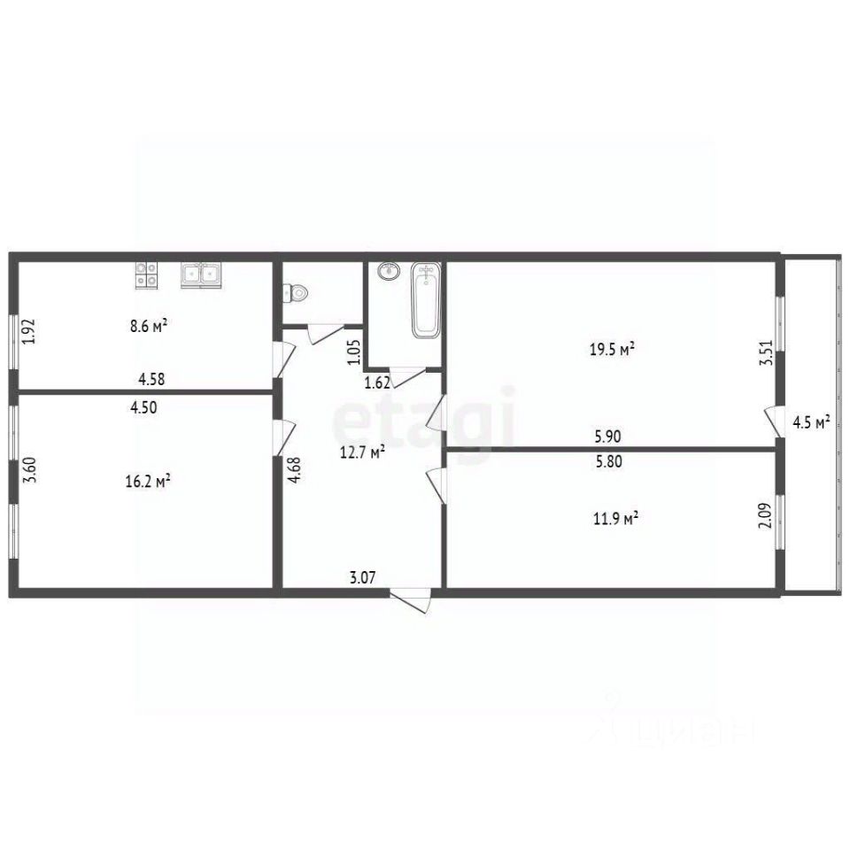 Планировка квартиры функциональна и продумана, позволяя с комфортом разместить мебель и личные вещи. Это предложение представляет собой удачный выбор для тех, кто ценит надежность, местоположение в центре города и практичность для повседневной жизни без необходимости в дополнительных вложениях.