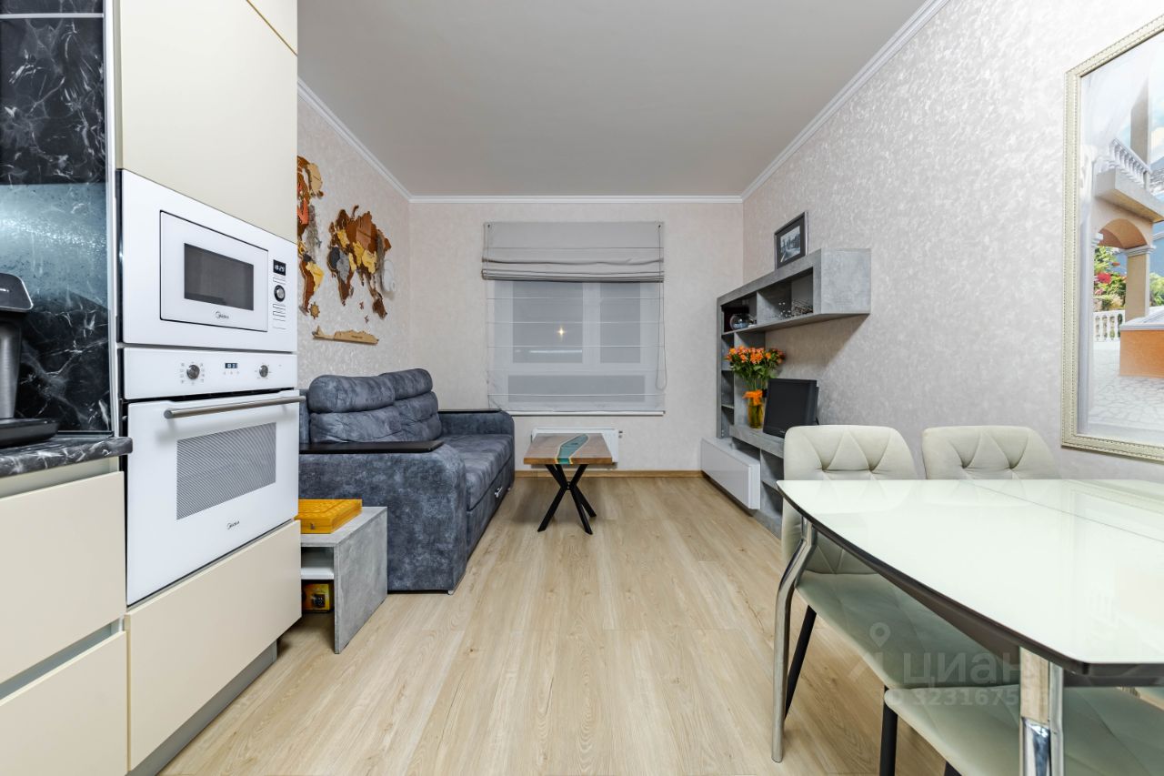 Квартира формат Евро трехкомнатная, общая площадь 60.4, с просторной и светлой кухней-гостиной площадью 17 кв. м., а также двумя изолированными комнатами, 11,5 и 17 кв. м.