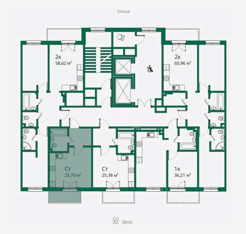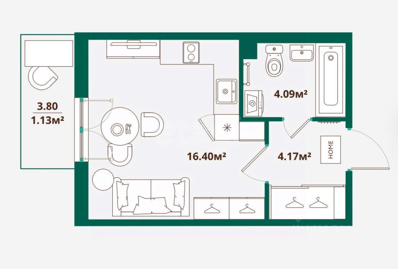 Продается современная студия площадью 25.79 кв.м на 4 этаже в сданном 12-этажном доме комфорт-класса.