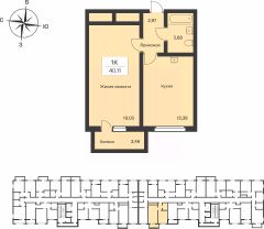 Продаётся 1-комнатная квартира в сданном доме (Корпус 2), срок сдачи: IV-кв. 2024, общей площадью 40.9 кв.м., на 8 этаже. Описание проекта:
