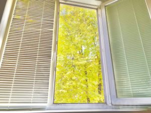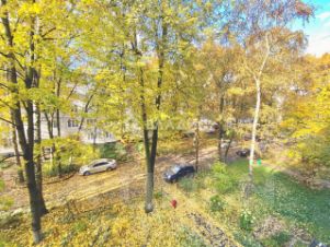 Окна выходят во двор, а с балкона открывается вид на зелёный двор. В доме есть наземная парковка, где можно оставить автомобиль.