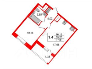 -Общая площадь 37,33 м²
