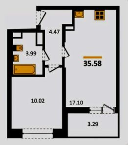 Общий метраж 35,58 кв.м., без учета лоджии. С учетом лоджии 38,87 кв.м.