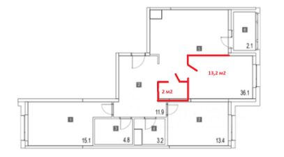 - три комнаты: 15 м2 13,5 м2 13 м2