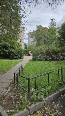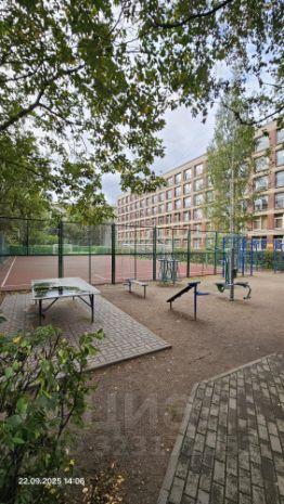 Детская площадка перед домом и спортивная площадка сзади дома.