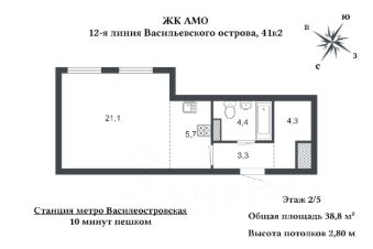Продается квартира - студия в премиальном ЖК АМО