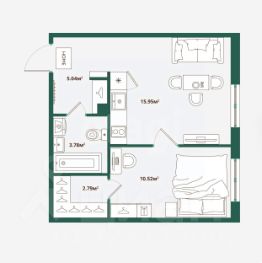 Придомовое пространство организовано как арт-пространство с закрытыми от транспорта дворами, что создает безопасную среду для отдыха. Квартира оснащена системой "Умный дом", позволяющей удаленно управлять освещением, климатом и безопасностью, оптимизируя энергопотребление. Планировка площадью 38,08 кв.м является оптимальной для комфортного проживания.