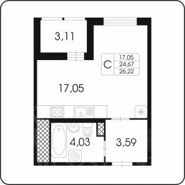 большой санузел, где установлена вся необходимая сантехника и есть место для стиральной машины.